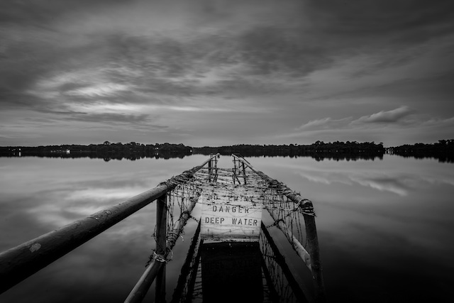 She moved swiftly across the bridge, looked up, and jumped in the deep, dangerous waters.