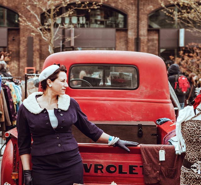The red truck parked in the middle of the road, coupled with her looks created discomfort in the bazaar.