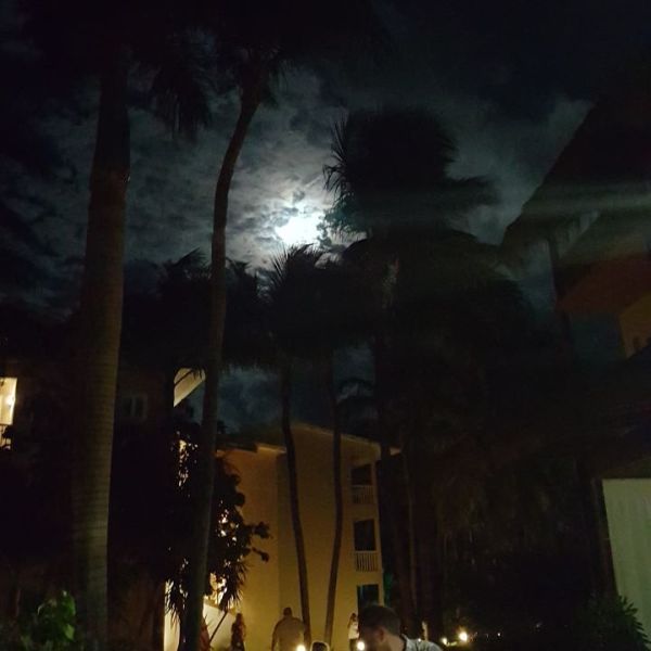 A crowd had gathered to watch the street play, with flashlights beaming towards the sky.
