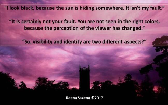 “I look black, because the sun is hiding somewhere. It isn’t my fault.”