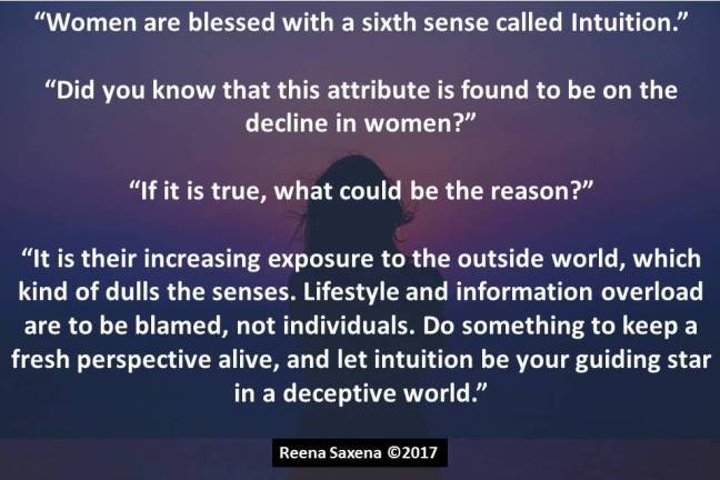 “Women are blessed with a sixth sense called Intuition.”