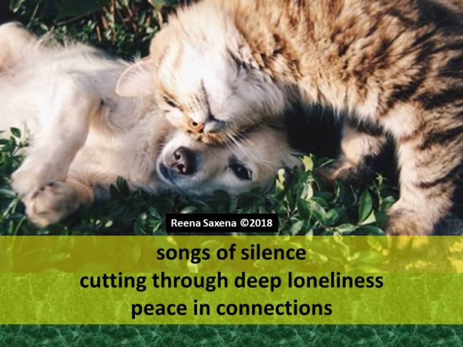 Songs of Peace Posted on January 22, 2018 by Reena Saxena songs of silence cutting through deep loneliness peace in connections Ronovan Writes Weekly Haiku Challenge Share this: Email a link to a friend (Opens in new window) Email Share on WhatsApp (Opens in new window) WhatsApp TweetLike Loading...