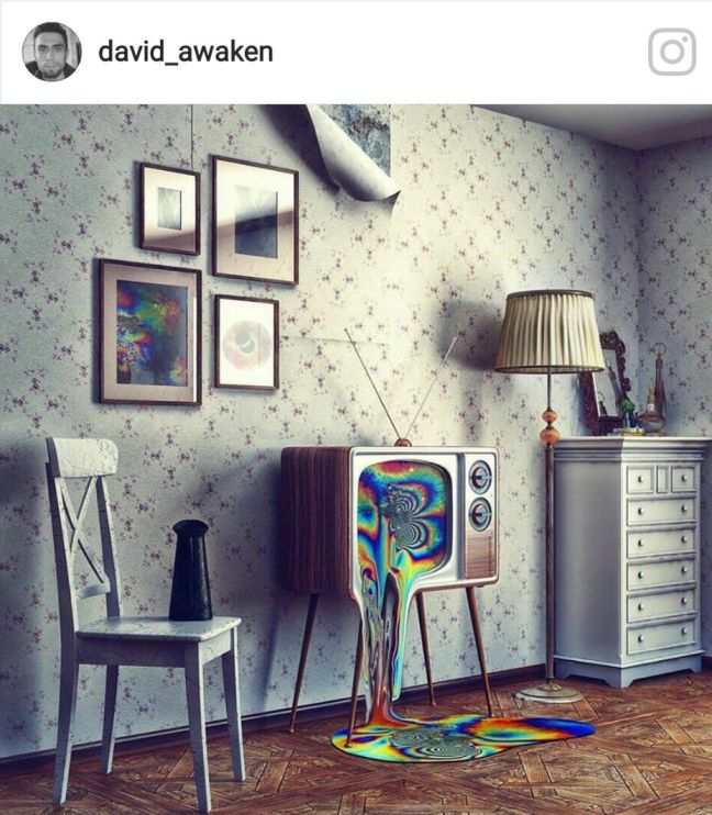 Nice tanka poem, but oh the image, I like it, hope my TV never leaks like that.