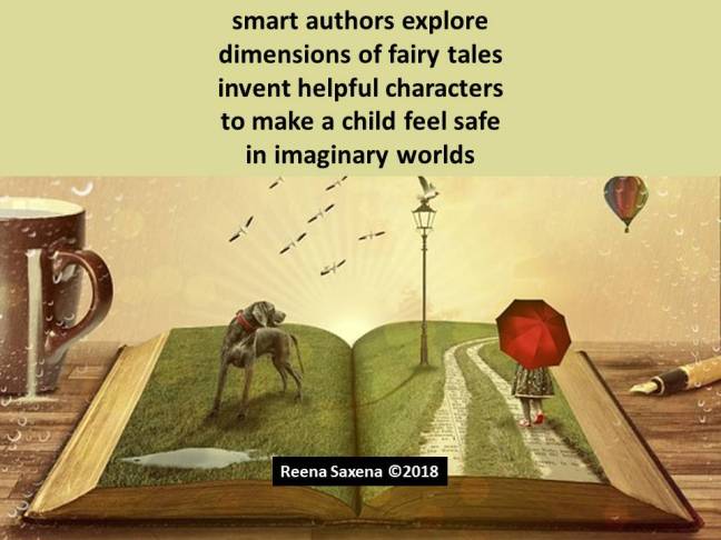 Fairy Tales Posted on June 25, 2018 by Reena Saxena smart authors explore dimensions of fairy tales invent helpful characters to make a child feel safe in imaginary worlds Ronovan Writes Share this: Email a link to a friend (Opens in new window) Email Share on WhatsApp (Opens in new window) WhatsApp TweetLike Loading...