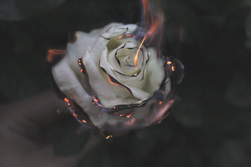 A burning rose and a poem on how we can be so de sensitised. Great!