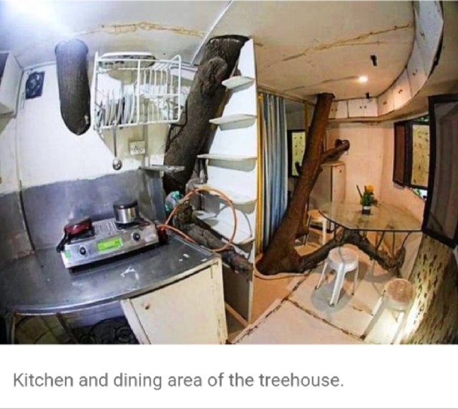 Rather every year or so she renovated her house to accommodate the growing tree.