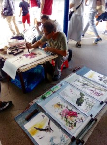 I see kids handle the brush deftly. Splashes of paint blossom into flowers. Onlookers in the cafe make me self-conscious. I don’t want to fail or look stupid.