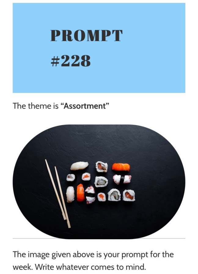 Reena’s Exploration Challenge Posted on April 29, 2022 by Reena Saxena The Bag Lady’s response to RXC#228 The Bag Lady Such colorful choicesfish not my appealBut I’ll take the sticks for my “McDonalds” mealI’ll use them for fries littered with ketchupIt’s a lunch at the office, don’t want to ruin my makeup. *** Reena’s Xploration Challenge #228 View original postShare this: Email a link to a friend (Opens in new window) Email Share on WhatsApp (Opens in new window) WhatsApp TweetLike Loading...