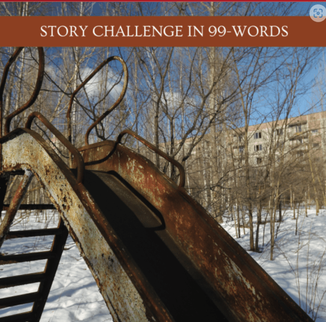 “This used to be a playground once, but children no longer play here.” The image shows an empty playground with a small script on the left – India. A plane flying above is that of Singapore Airlines.