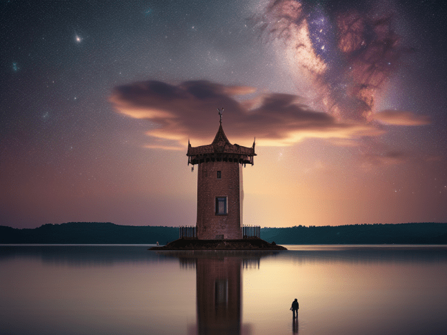 Atop the tower, whispers weave a spell,