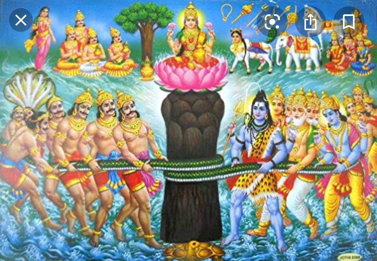 There is another story about the churning of the ocean by the gods to derive Amrit, the nectar of immortality.
