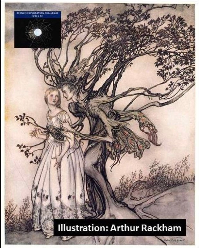 She wasn’t supposed to go there by herself, certainly not alone. But there was a allure to the forest that she couldn’t resist. She stepped in the semi darkness and looked for the lake that she was told was in the middle of this dense forest. Her eyes took a while to get accustomed to the dim light. She approached cautiously avoiding the low hanging branches of the trees. Somewhere on the way, her dress got caught in a branch, or so she thought. She turned around to sort it out but the dress wasn’t…