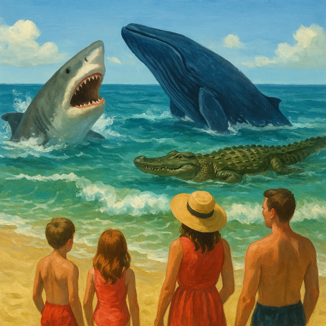 Shed fears like you shed clothes. I’m compelled to be a sharkto protect myself from a whaleand nibble on baby crocodilesThey swallow smaller fish;Their bellies are notwhere I want to be We sail in the same boatof self-defence Quadrille at dVerse